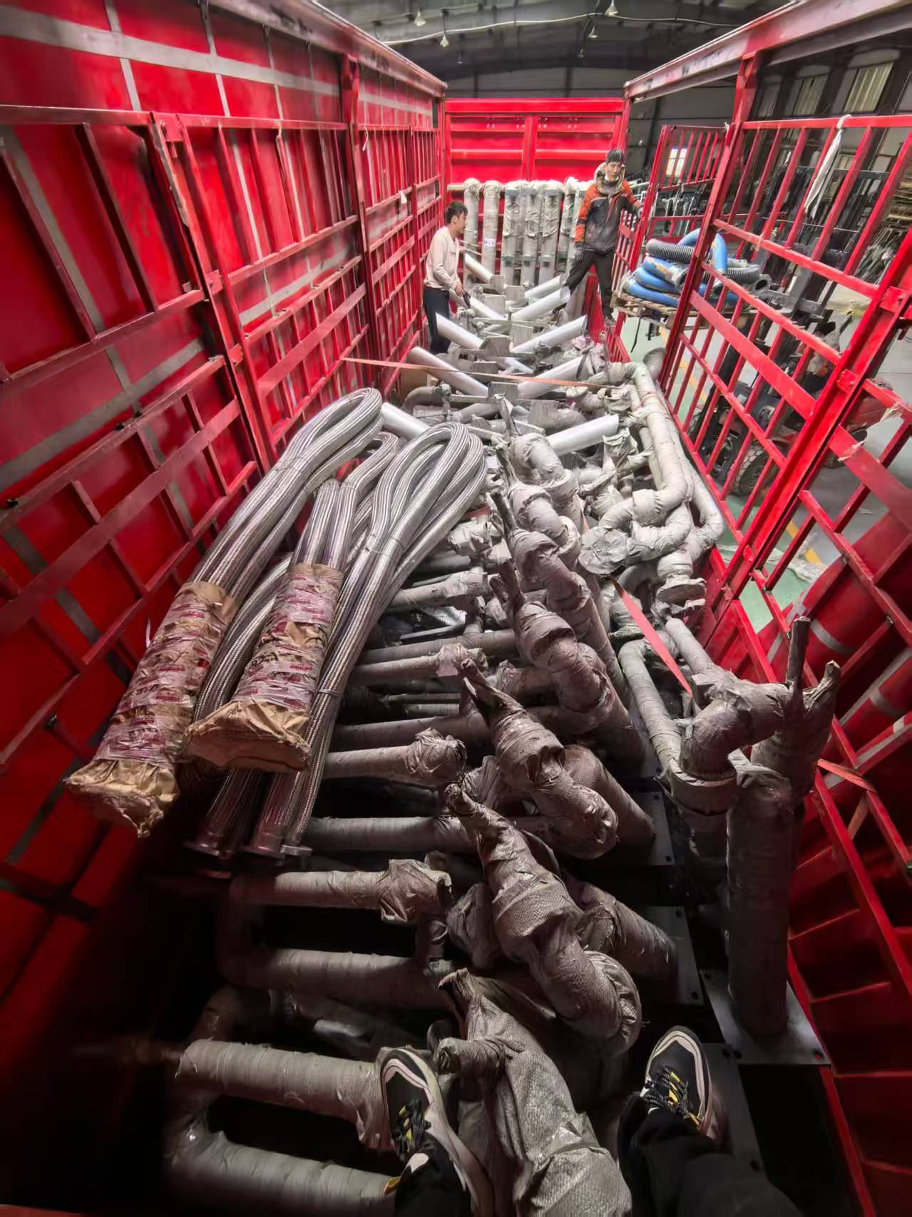 江蘇南京客戶采購的一批火車頂部卸車鶴管和金屬軟管已裝車發(fā)往使用現(xiàn)場